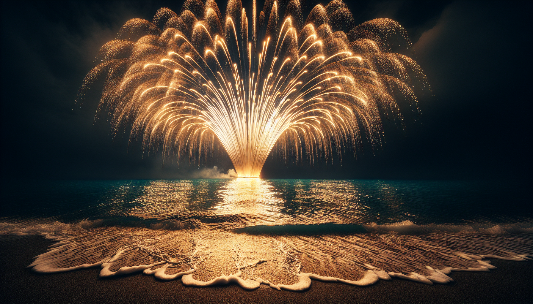 波を味方につける方法: 波がある場合は、あえて長時間露光(10秒以上)で波を平滑化し、シルクのような水面に花火が映る写真を狙うこともできます。NDフィルターを使ってシャッター速度を稼ぐ上級テクニックです。